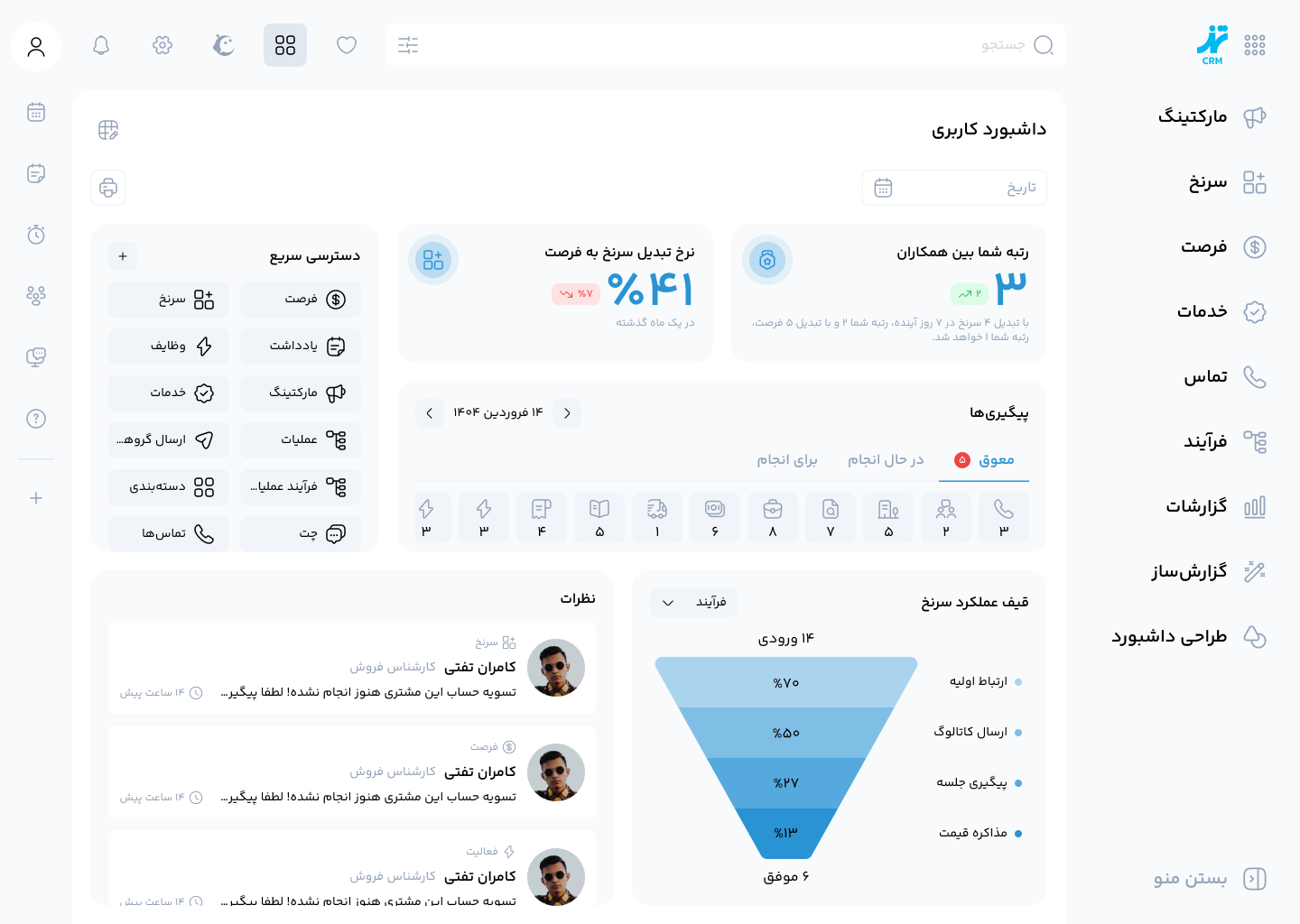 “عملکرد هر نماینده فروش را در قیف خود به صورت شفاف ببینید و نقاط قوت را تقویت کنید.”